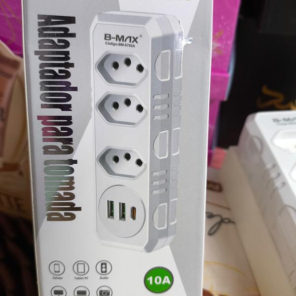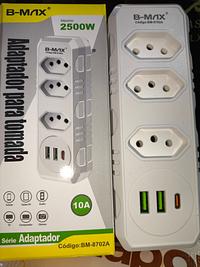 Benjamim Triplo Adap 3 Tomadas 2 Usb 1 Tipo C B-max bm-8702a